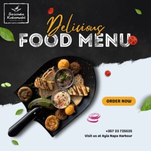 We specializes in traditional Greek and Cypriot cuisine, with a focus on grilled meats, souvlaki, pita wraps, and Mediterranean flavours — all served with fresh, high-quality ingredients in a relaxed, welcoming atmosphere, Presented in “sesoules”This special approach is part of our identity and we want to share it with each of our visitorsThe restaurant has become a local favourite since its founding in 2015, when it first opened its doors in the picturesque harbour area of Ayia Napa. Since then, Sesoula Kalamaki has built a reputation for delicious food, generous portions, and friendly service — making it a go-to destination for both locals and tourists seeking authentic Mediterranean dining.